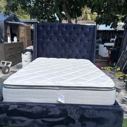 Queen Size Bed Frame White With MATTRESS And Box Spring Set New Bed Set 3pcs // CAMA Queen Size Nueva $350Miami, FL