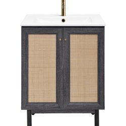 Swiss Madison - Classe Wicker 24" Bathroom Vanity Cabinet in Black, Sink & Black Matte Faucet $225Miami, FL