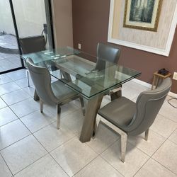 Modern Glass Dining Table Set with 4 Chairs – Like New$400Medley, FL