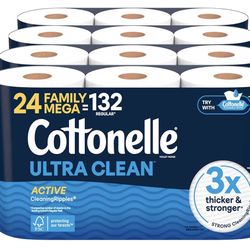 Cottonelle Ultra Clean Toilet Paper with Active CleaningRipples Texture, Strong Bath Tissue, 24 Family Mega Rolls = 132 Regular Rolls (4 Packs of 6)$22Biscayne Park, FL