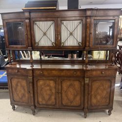 vintage mahogany china hutch features a mirrored back, glass display cabinets, and brass hardware - 76” x 17” x 72”$195Fort Lauderdale, FL