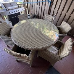Outdoor Wicker Dining Set 6 Chairs Glass Top Table Patio Furniture$300Halndle Bch, FL