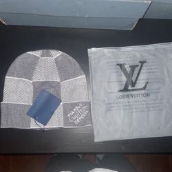 Louis Vuitton Checkered Knit Beanie โ Grey$150Miami, FL