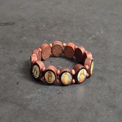 Devotional Saints Stretch Bracelet With Oval Wood Panels & Wood Bead Spacers Depicting Jesus, The Virgin Mary & Different Saints In Full Color Art$5Fort Lauderdale, FL