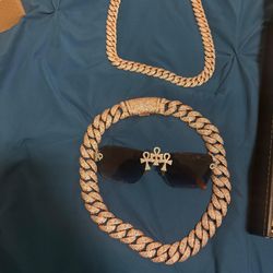 14K gold plated Cuban Link 8mm chain and bracelet set$100Hollywood, FL