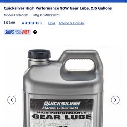 Quicksilver High Performance 90W Gear Lube, 2.5 Gallons$130Miami, FL