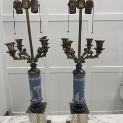 Vintage French Wedgewood Neoclassical Jasperware Candelabra Table Lamps $1,200Fort Lauderdale, FL