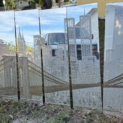 New York Brooklyn Bridge Empire State Building Twin Towers Glass Mural$300Miami, FL