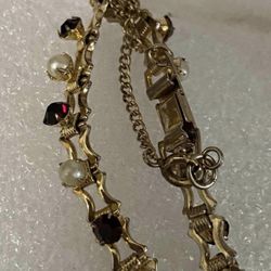 Pulsera Gold Filled Piedras Rojas Y Perlas Joya Antigua $25Hialeah, FL
