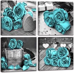 Black and White Teal Rose Canvas Wall Art - Ready to Hang for Home Decoration 4 Pieces Framed Size 14x14 Inches each one$37Hialeah Gardens, FL