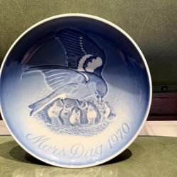 Bing & Grondahl 1970 Mother's Day Wall Plate Bird Chicks Blue White Porcelain$15Laud Lakes, FL