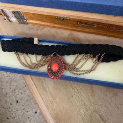 Collar Tejido Cuello Dije Piedra Orange Laminado Joyería Antigua $12Hialeah, FL