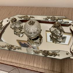 ESTATE SALE Vintage Dresser Set With Mirror Tray, 2 Perfume Bottles And 1 Jewelry Box, Also Included Picture Frame And Clock$175Pembroke Pines, FL