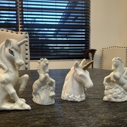 vintage miniature white ceramic or porcelain bisque figurines of a unicorns and a pegasus.$20Miami, FL