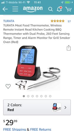 Meat Food Thermometer, Wireless Remote Instant Read Kitchen Cooking BBQ Thermometer with Dual Probe, 260 Feet Sensing Range, Timer and Alarm Monitor$22Miami, FL