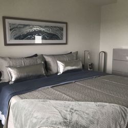 Lux Gray Velvet Queen Bed (includes Mattress and Box Spring) $400Miami, FL