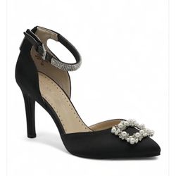 Lulu Townsend Black Satin Peep Toe Heel Pumps with Rhinestone Accent Detail$35Miami, FL