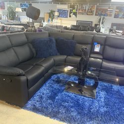 SECTIONAL GENUINE LEATHER RECLINER ELECTRIC BLACK COLOR.. DELIVERY SERVICE AVAILABLE 🚚💥🚚✅$899Hollywood, FL