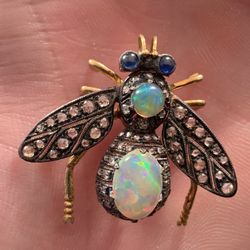 Bumble Bee Brooch Pin Opals & Diamonds 14Kt Gold & Silver Estate Insect Jewelry$495Miami, FL