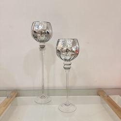 SET OF TWO Modern Glass Candle Holders…Could Be Used As Vases As Well…9” Height And 10” Height Excellent Condition… BOTH… $25$25Miami, FL