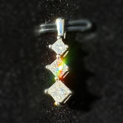 14k solid white gold 3 stone 0.65CTW Diamond princess cut Pendant charm$549Pompano Beach, FL