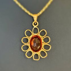 Vintage Jewelry Art Deco 18k solid yellow gold orange spinel oval flower Pendant charm$1,200Pompano Beach, FL