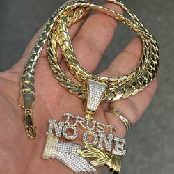 -TRUST NO ONE -icy simulated diamonds stones pendant and Cuban necklace 🔥🔥🔥$140Fort Lauderdale, FL