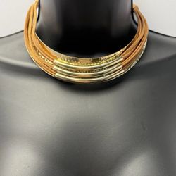 Sophia & Kate Brown Suede Choker Necklace with Gold Hammered Accents – Boho$7North Miami Beach, FL