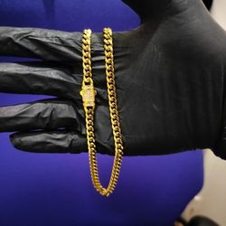 14K gold plated 6mm Cuban link chain Cz diamond lock$50Hollywood, FL