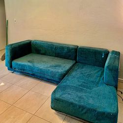 For Sale: Stylish Teal Velvet Sofa with Cushions$175Hillsboro Beach, FL