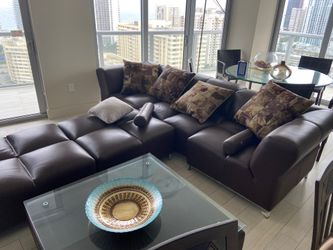 Brown Couch real leather + two ottomans + coffee table$1,500Hallandale Beach, FL