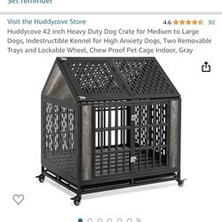 Huddycove 42 inch Heavy Duty Dog Crate for Medium to Large Dogs, Indestructible Kennel for High Anxiety Dogs, Two Removable Trays and Lockable Wheel, $150Tamarac, FL