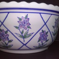 PORCELAIN POT PLANT, PURPLE FLOWERS WITH BLUE TRIMS, RUFFLED EDGE, 10Dx4.5H INCH$20Miami, FL