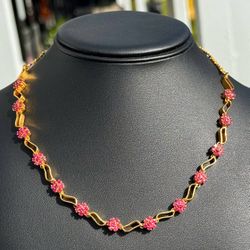 Antique Jewelry 22k solid yellow gold flower πΊ ruby 5.00CTW necklace chain 18.00" 6.50mm width$8,500Pompano Beach, FL