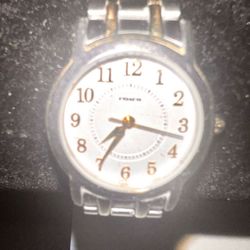Coach women's watch with round dial and numerals, and two-tone stainless steel bracelet in silver and gold. Works well, just needs batteries.$40Miami, FL