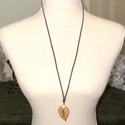 Long cord necklace with gold-plated leaf, filigram and pearl$20Miami, FL