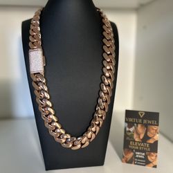 20mm Miami Cuban Link Pink Red Rose Gold Plated Chain Necklace 18k & 14k Diamond Iced Out Lock$220Pompano Beach, FL