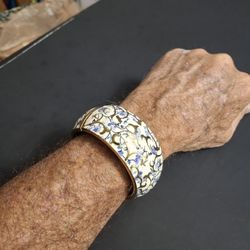 Vintage Mid 20th Century Blue Ivory & Goldtone Floral Enamel Wide Hinged Clamper Bangle Bracelet W/Spring Hinge Cloisonne Styling$10Fort Lauderdale, FL