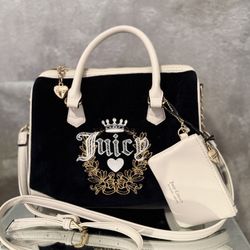 Juicy Couture Velour Heritage Satchel bag in black liquorice with a cream/angel trim $75Miami, FL