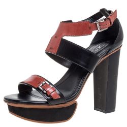 TOD’S Black And Brown Leather Ankle Strap Platform Sandals Size 36.5$100Miami, FL