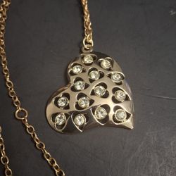 Goldtone Heart Shaped Pendant Necklace Adorned With Rhinestones In A Patterned Cutout Design 26" Rolo Chain$4Fort Lauderdale, FL