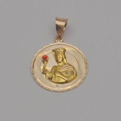 14K Yellow Gold 20mm Santa Barbara Medal – Round Religious Pendant Red Accent$348Miami, FL