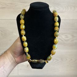 Handmade Faceted Chunky Yellow Agate With Dzi Pendant, 12”$99Miami, FL