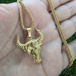 Hip hop New Bull Head Man Pendant 316L Stainless Steel Fashion gold color with rope chaine$45Fort Lauderdale, FL