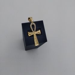 10k Yellow Gold CZ Egyptian Ankh Pendant $400Hollywood, FL