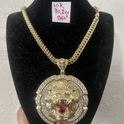 10K Yellow Gold Franco Chain and Pendant CUBIC ZIRCONIUM STONES 70.2Gr 24 Inches Long $5,350Hialeah, FL