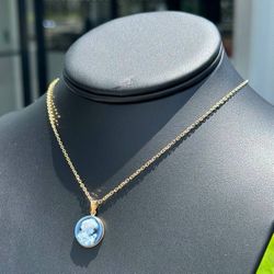 Jewelry 14k yellow gold agate cameo lady stone pendant chain necklace 16.00” 1.50mm$600Pompano Beach, FL