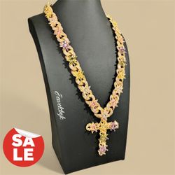 Gold Platted Flower Necklace With Cross Pendant $100Miami, FL