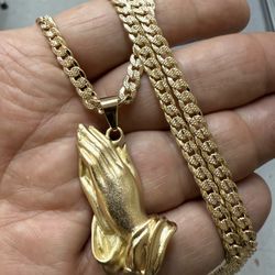 14k premium gold plated Praying Hands pendant, and necklace$39Fort Lauderdale, FL