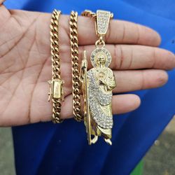 -Jesus pendant- icy simulated diamonds stones pendant and Cuban necklace 🔥🔥🔥$79Fort Lauderdale, FL